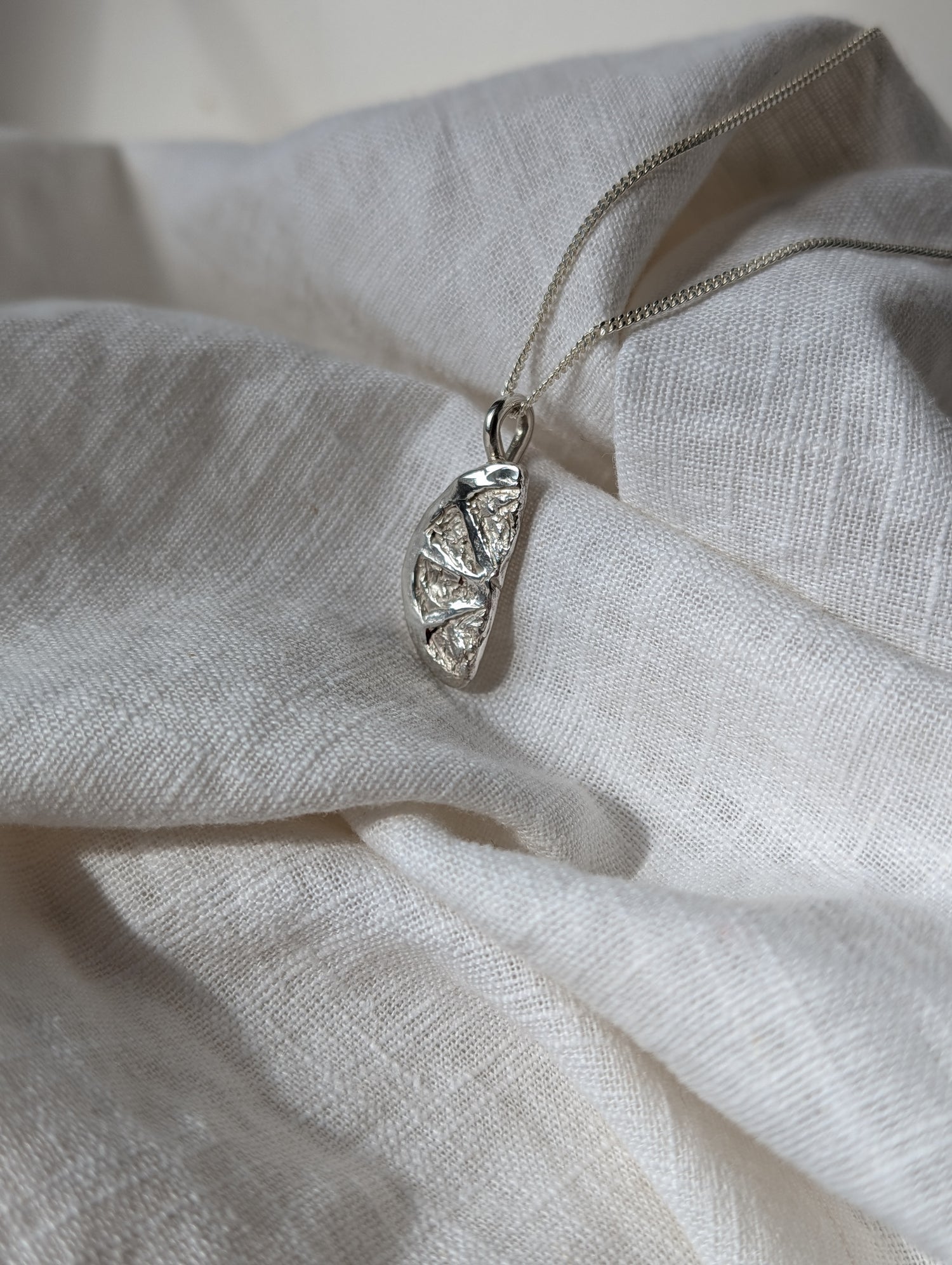 A little slice of summer, our citrus slice is a one of a kind hand carve pendant that weighs in at a hefty 12 grams of solid recycled sterling silver.