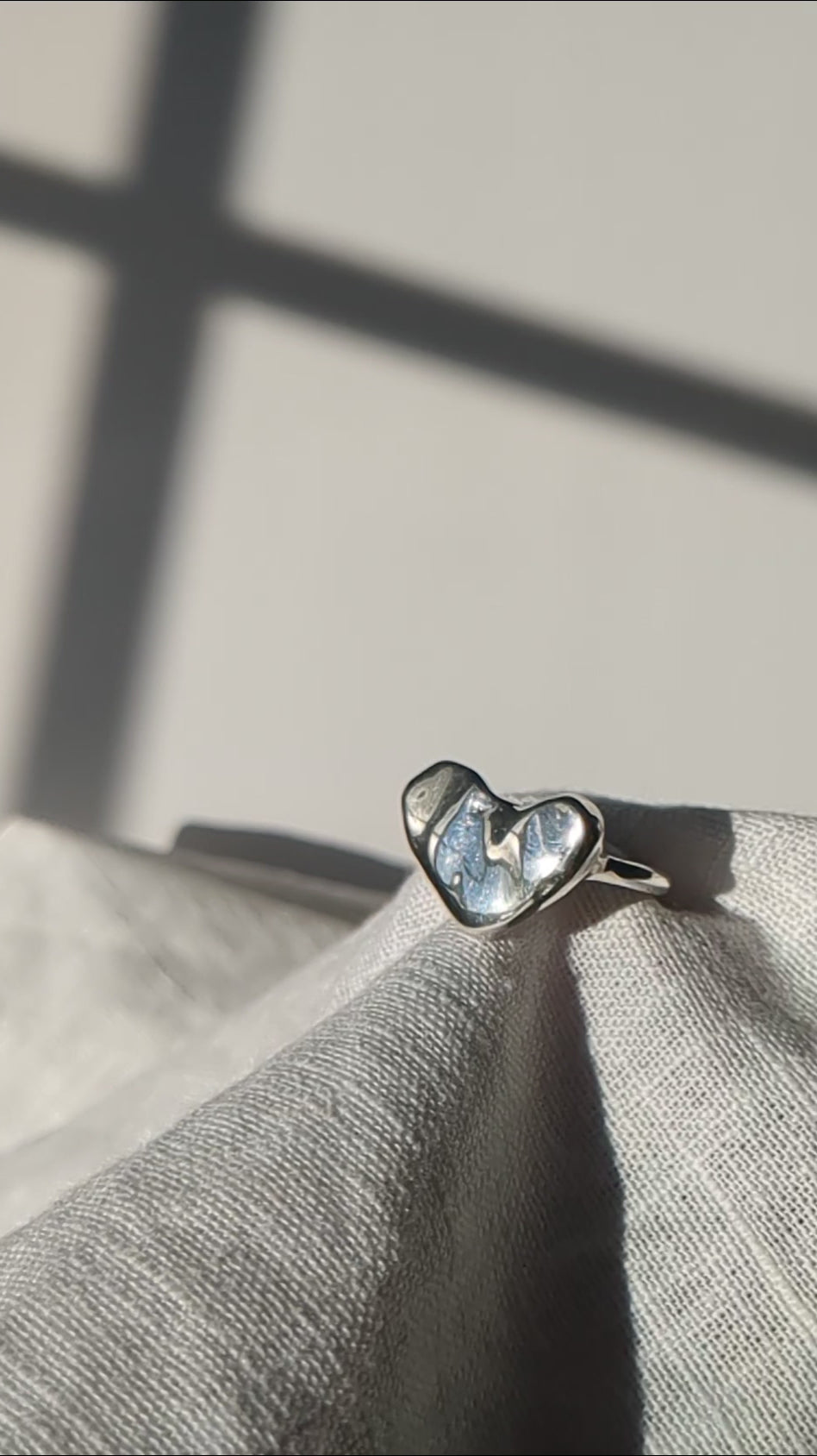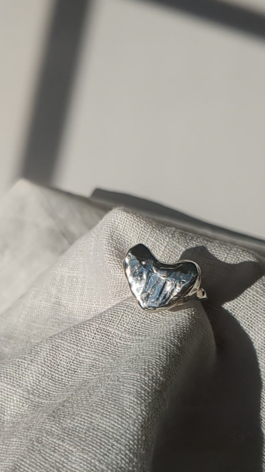 Each heart ring is one of a kind. Hand carved in wax and then cast in solid recycled silver these pieces are made to last.