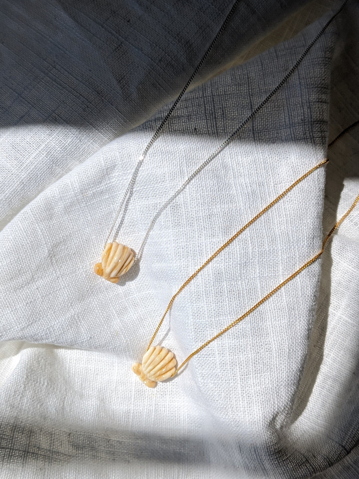 Our cute as a clam shell necklace adds a touch of summer to any outfit.