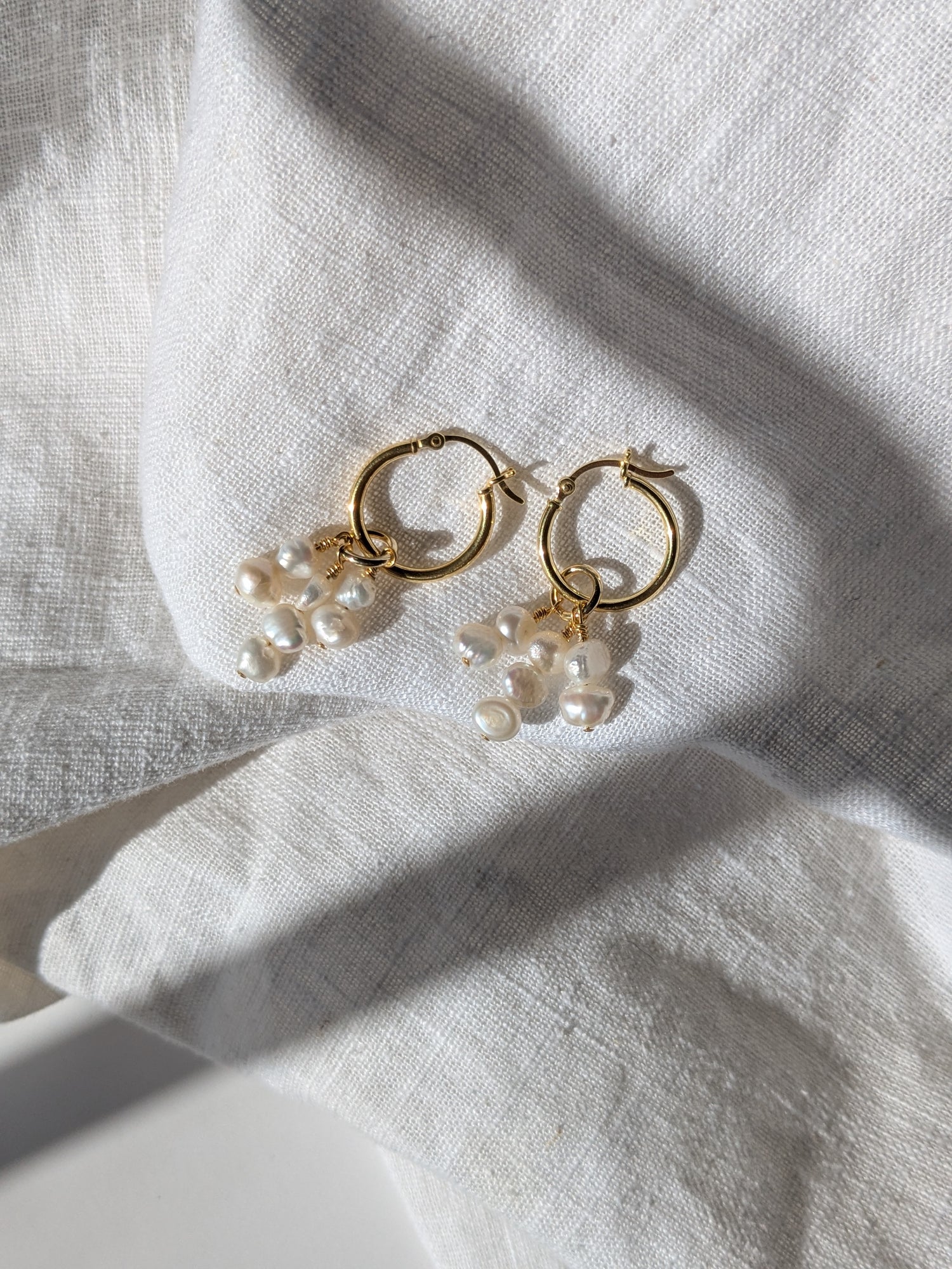 Who doesn't love a pearl? Our Etta pearl hoops are the perfect combo of trendy hoop and classic pearl.
