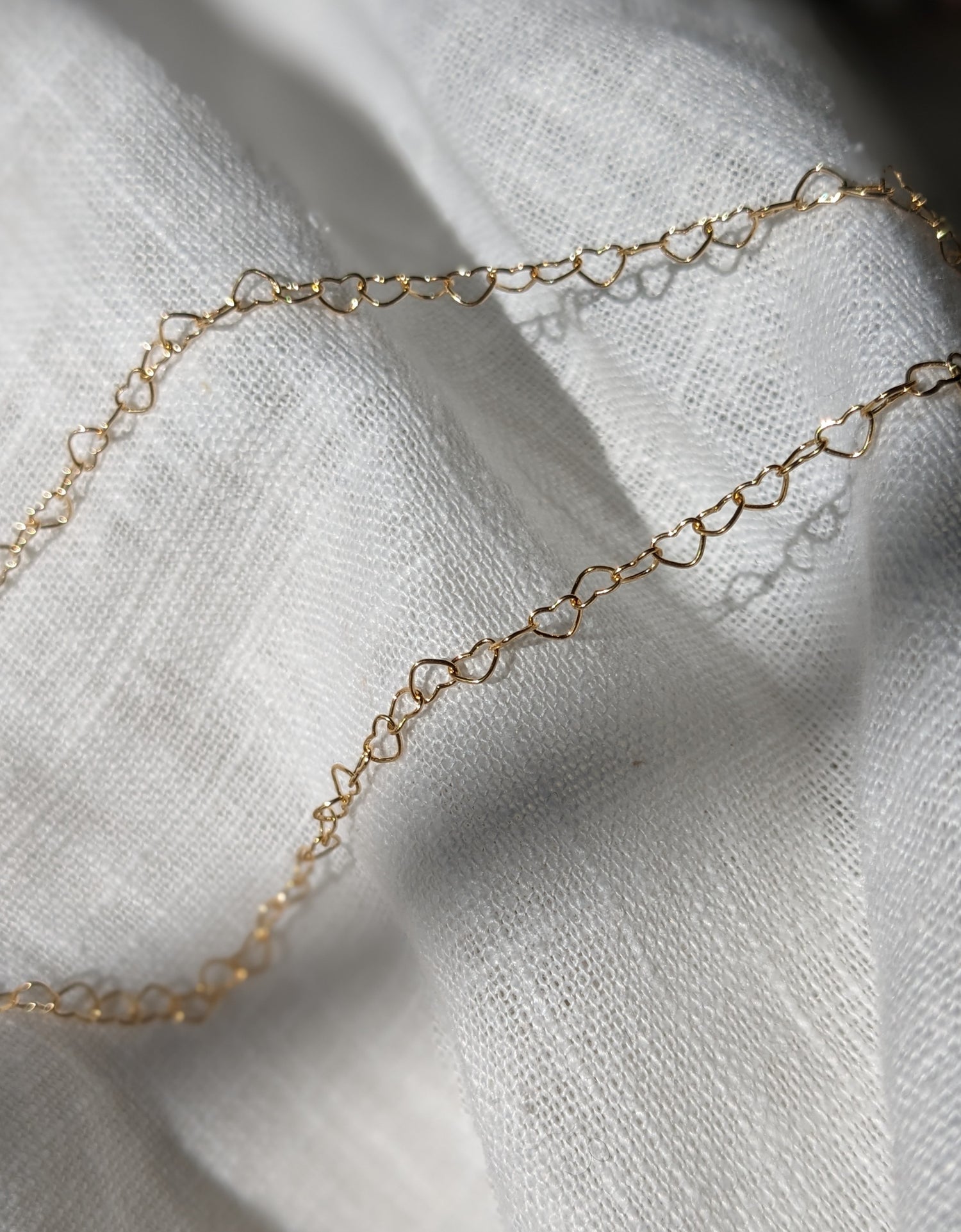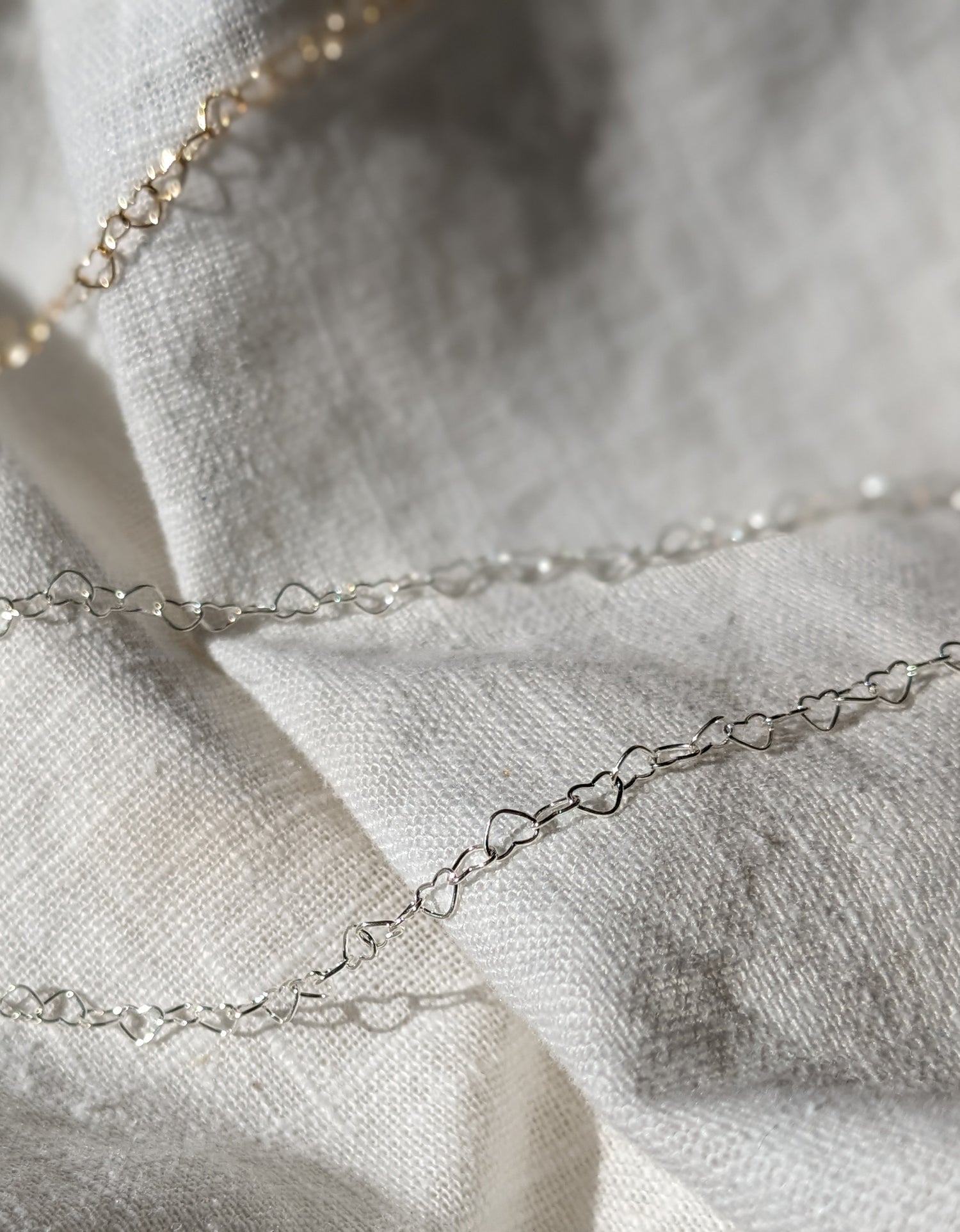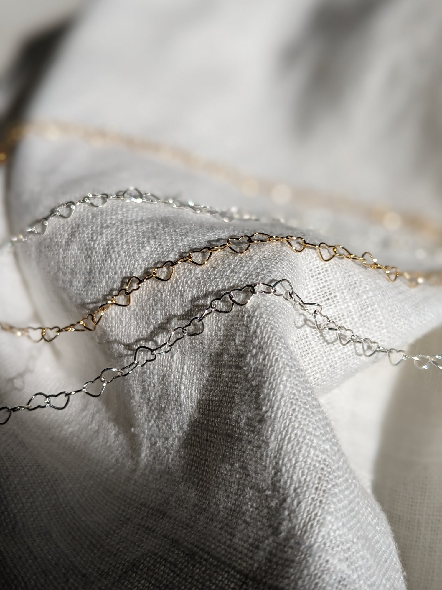 The cutest way to way hearts - our shortie chain is made from tiny interlinked hearts. Available in gold vermeil or sterling silver.