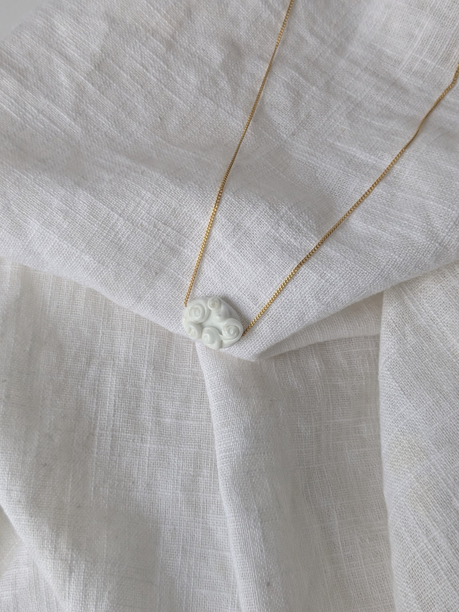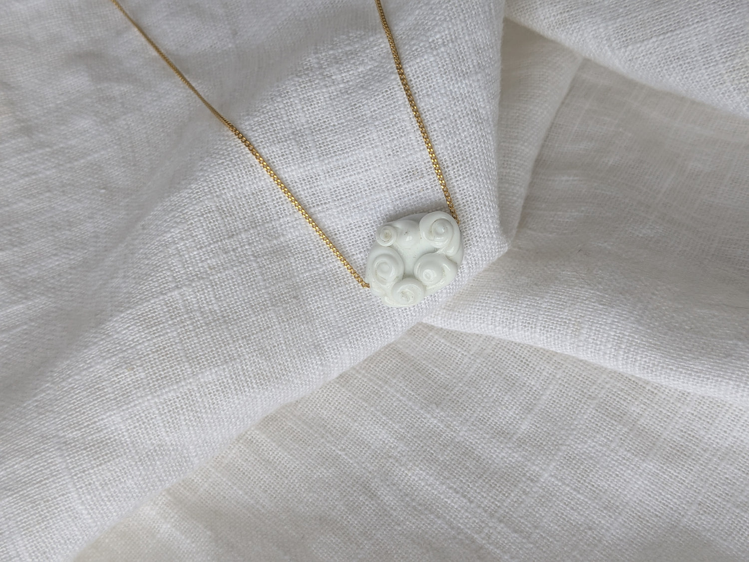Super cute ivory cloud with swirl detail murano glass necklace.