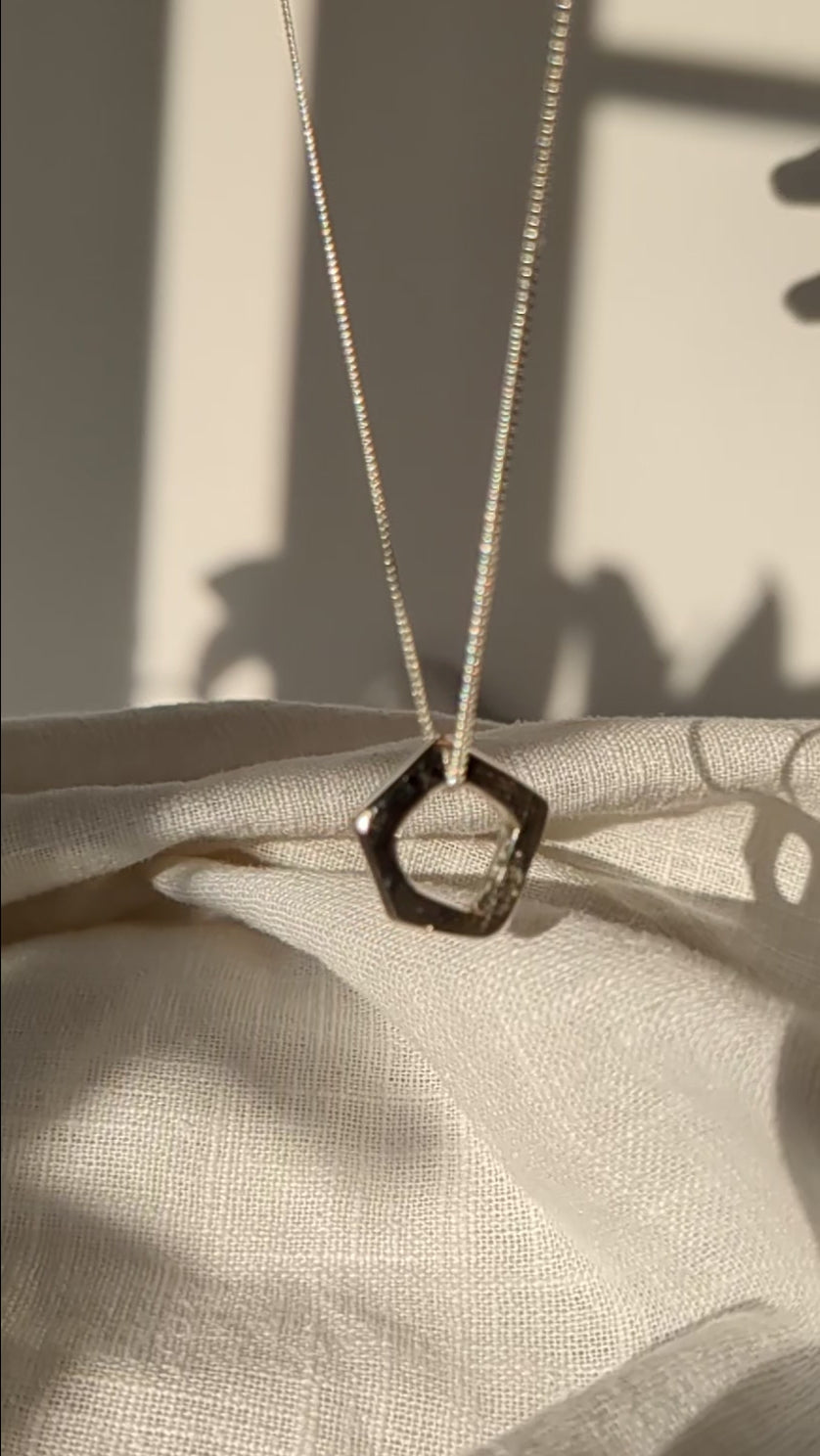 Pendant - 4.7grams of solid recycled silver, approximately 16mm diameter x 18mm x3mm