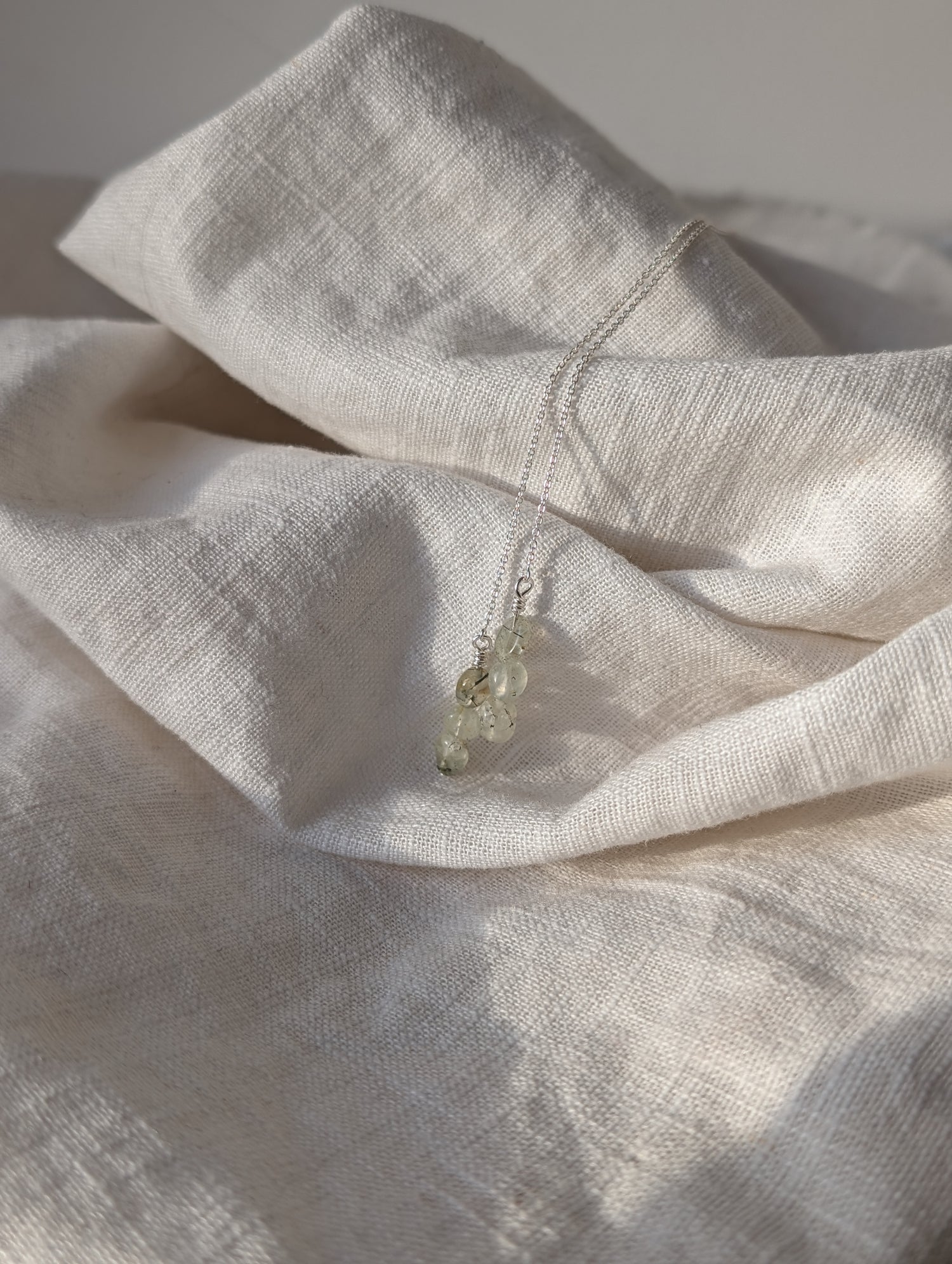 Sterling silver 6 inch threader earrings with three moss agate stones.