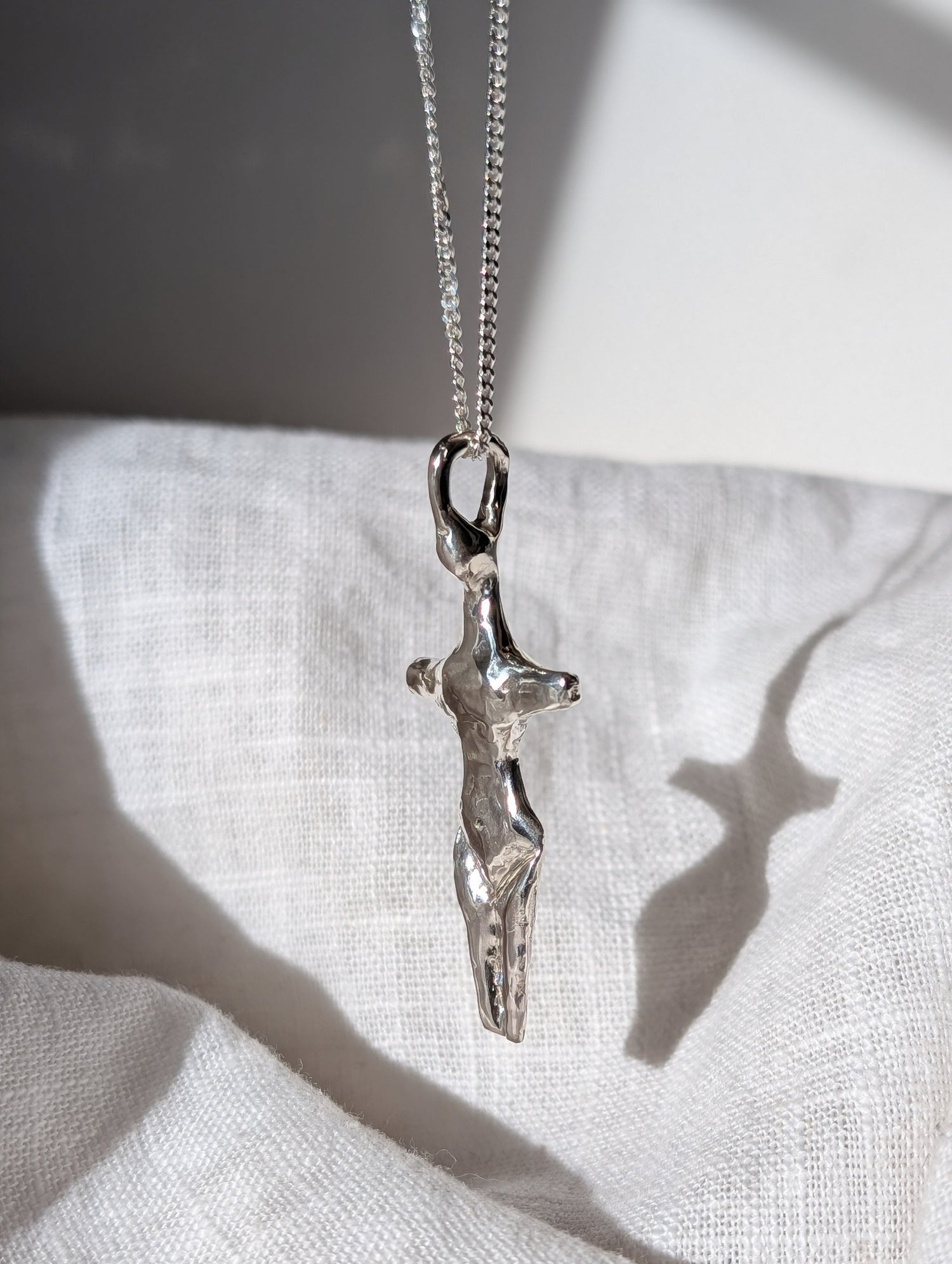 Before the age of kings there was the age of mothers. Inspired by the mother goddess that the Romanians worshipped over 6000 years ago, Becca as made a one of a kind silver mother goddess pendant.