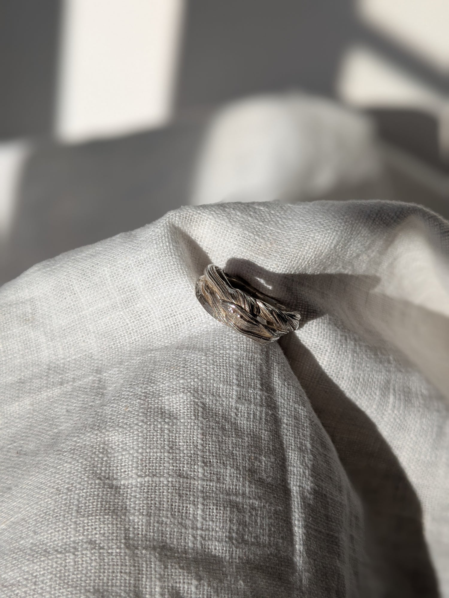 The Pretty Knot ring features a knotted twisted front and lots of texture. It is a little wider at the front with a narrower polished back to allow for comfort when wearing this statement ring.