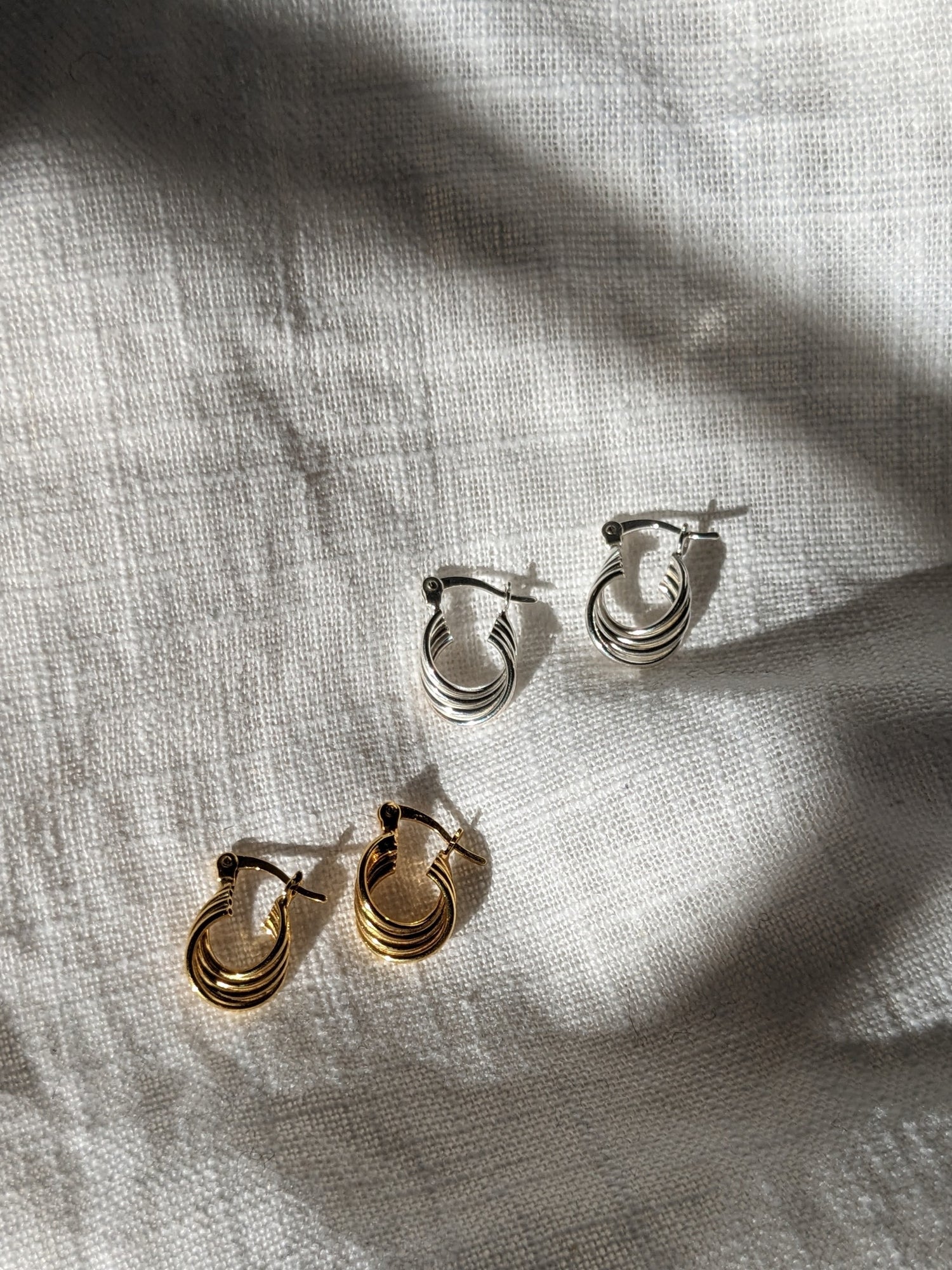 Our Shiro Twist hoops are made of four bars delicately twisted to make the perfect hoop. Finished with a super comfy hinged clasp the Shiro hoop is set to become your go to earring.