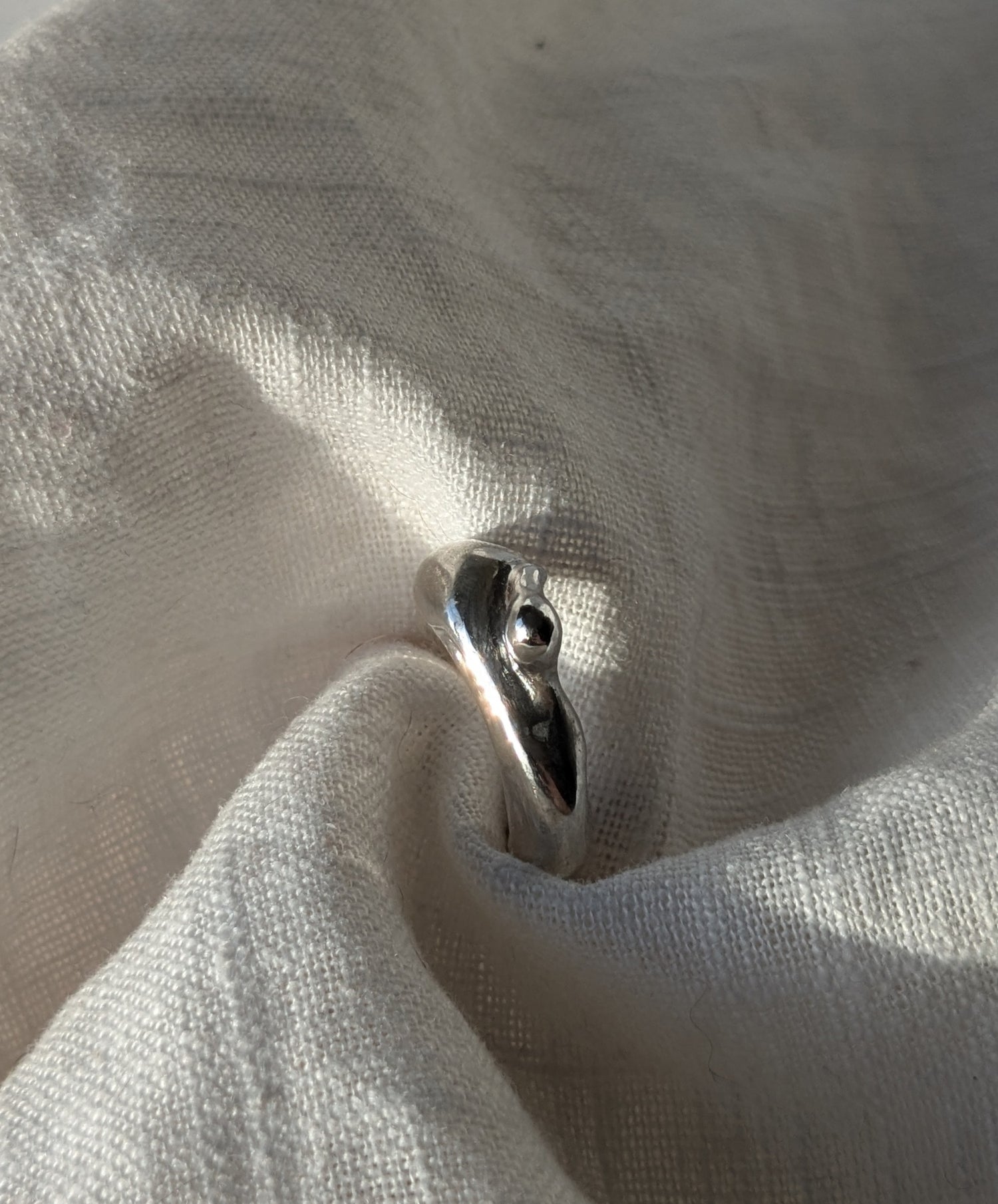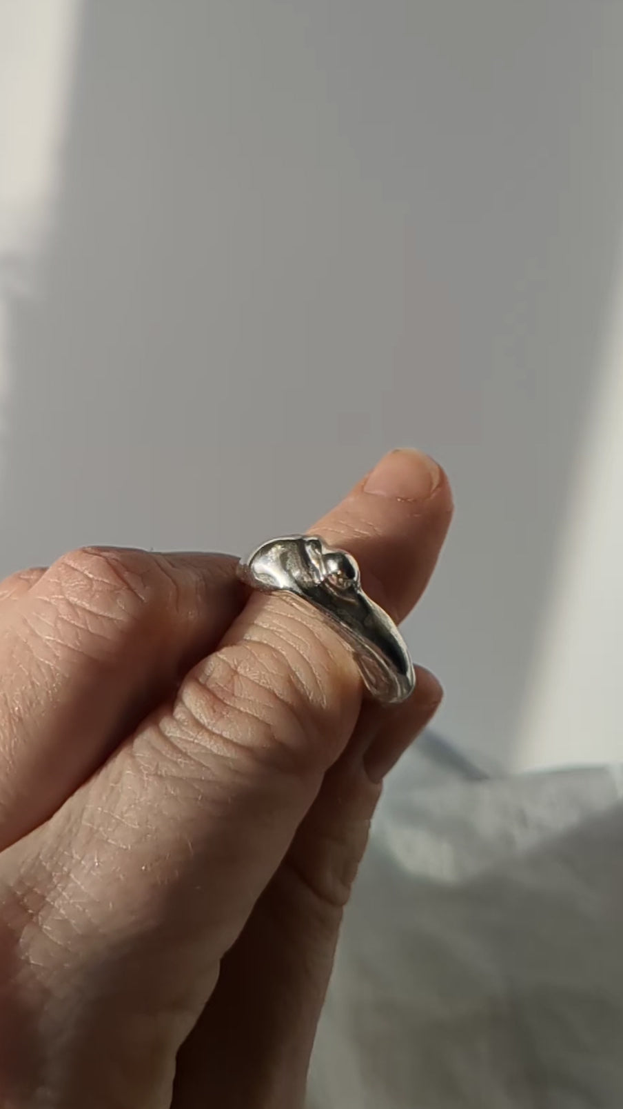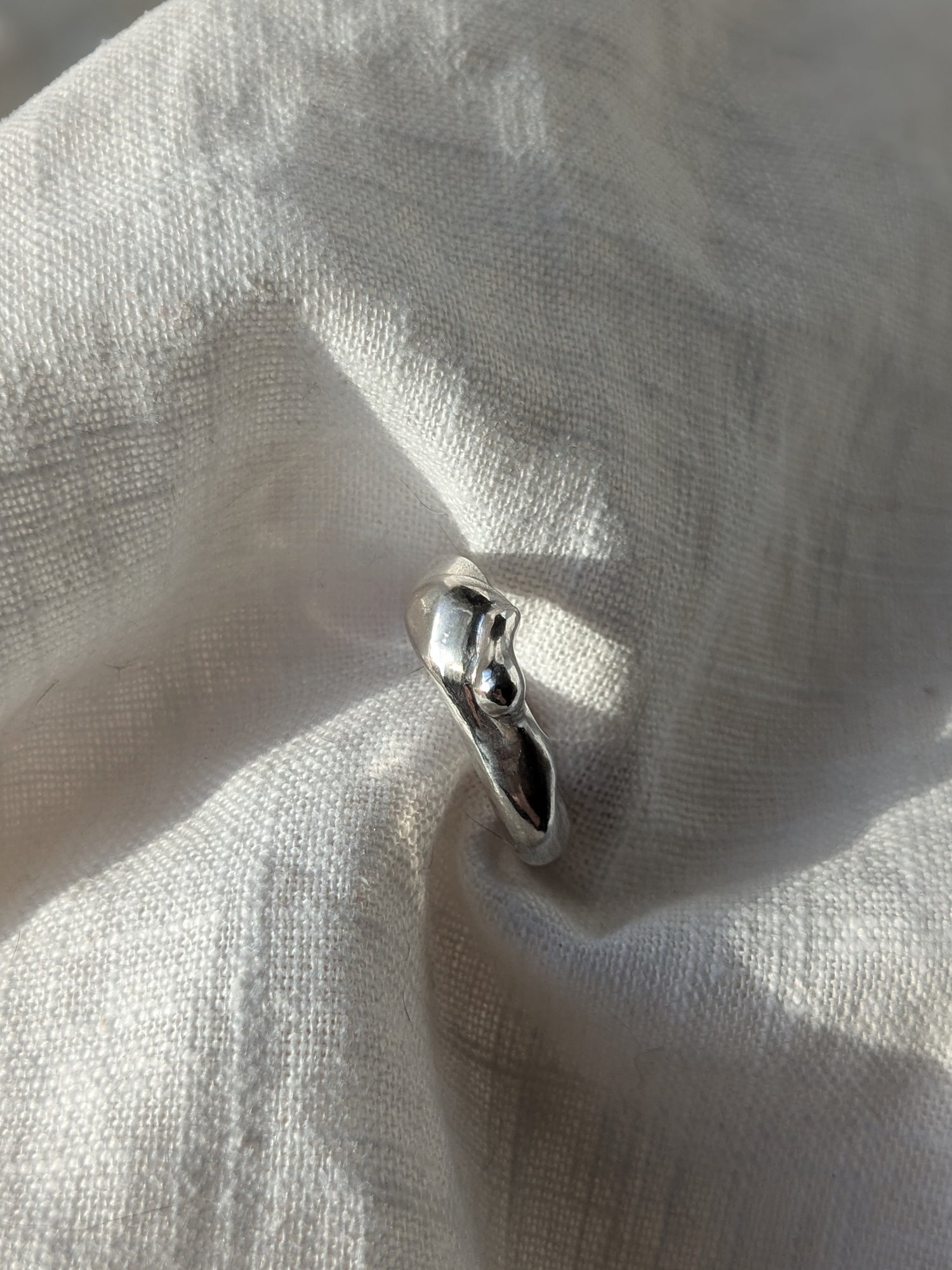 Beautifully fluid mirror finish silver ring. Hand made in Belfast this unique one of a kind ring has a special drip effect on one side.